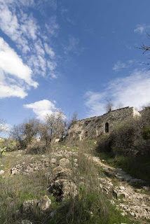 Just outside of the western ‘entrance’ to Jerusalem, in a steep valley descending north-north-west there is the deserted village of Lifta. The watercourse runs along by the remains of the paved street into the village and there are a number of houses and other derilict buildings remaining.