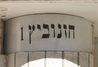 As with other languages, there are different styles of lettering, from the ancient to the modern, and a comparisom of an adverisement in a newspaper with an early text shows this clearly. Here are two shots of public lettering, the first showing the address of a building, and the second referring to an organisation, with cursive script over printed script.